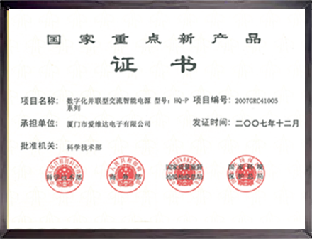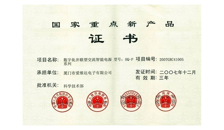 爱维达《数字化并联型交流智能电源系列》项目获评“国家重点新产品”。