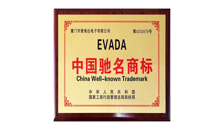 爱维达商标“EVADA”荣获中国驰名商标。